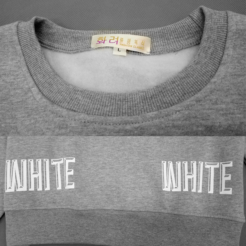 Brand Name: mkmjSleeve Length: FullThickness: StandardClosure Type: NoneSleeve Style: RegularCollar: O-NeckMaterial: CottonClothing Length: RegularPattern Type: LetterHooded: NoDetachable Part: NoneType: RegularModel Number: AMD188Style: FashionGender: MenItem Type: SweatshirtsStreetwear Style: Hedgingoff white Sleeve type: GeneralElement: Youth fashion