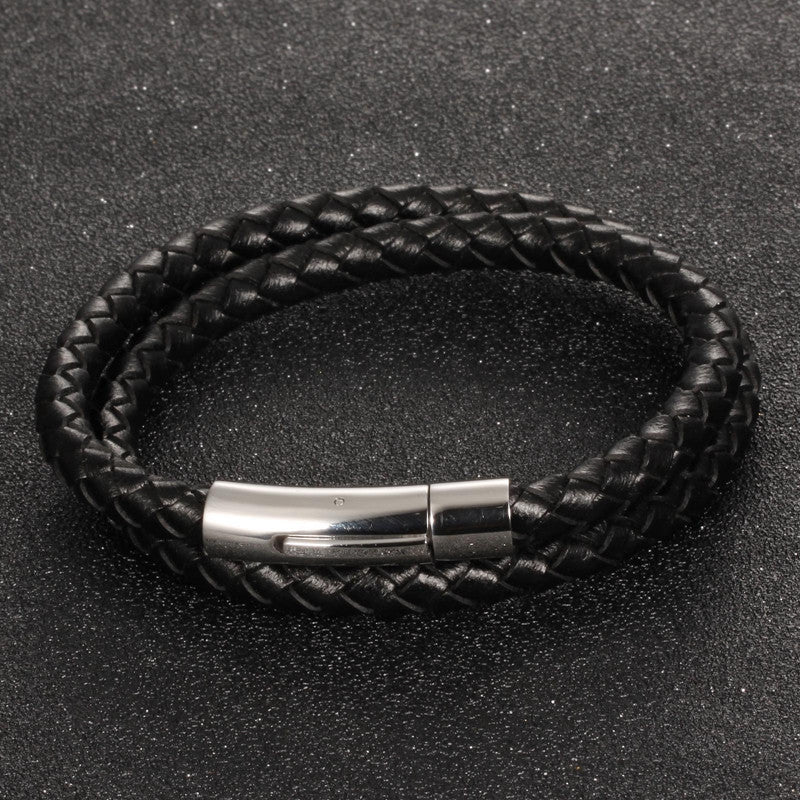 Item Type: BraceletsFine or Fashion: FashionBrand Name: MOZO FASHIONLength: 20cmClasp Type: Spring-ring-claspsMetals Type: Stainless SteelShape\pattern: GeometricGender: MenStyle: TrendySetting Type: NoneMaterial: LeatherChain Type: Rope ChainBracelets Type: Charm BraceletsFunction: OtherCompatibility: Other